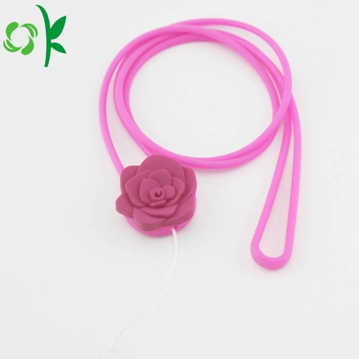 Custom 3d rose silicone necklace for mobile phone case with chain